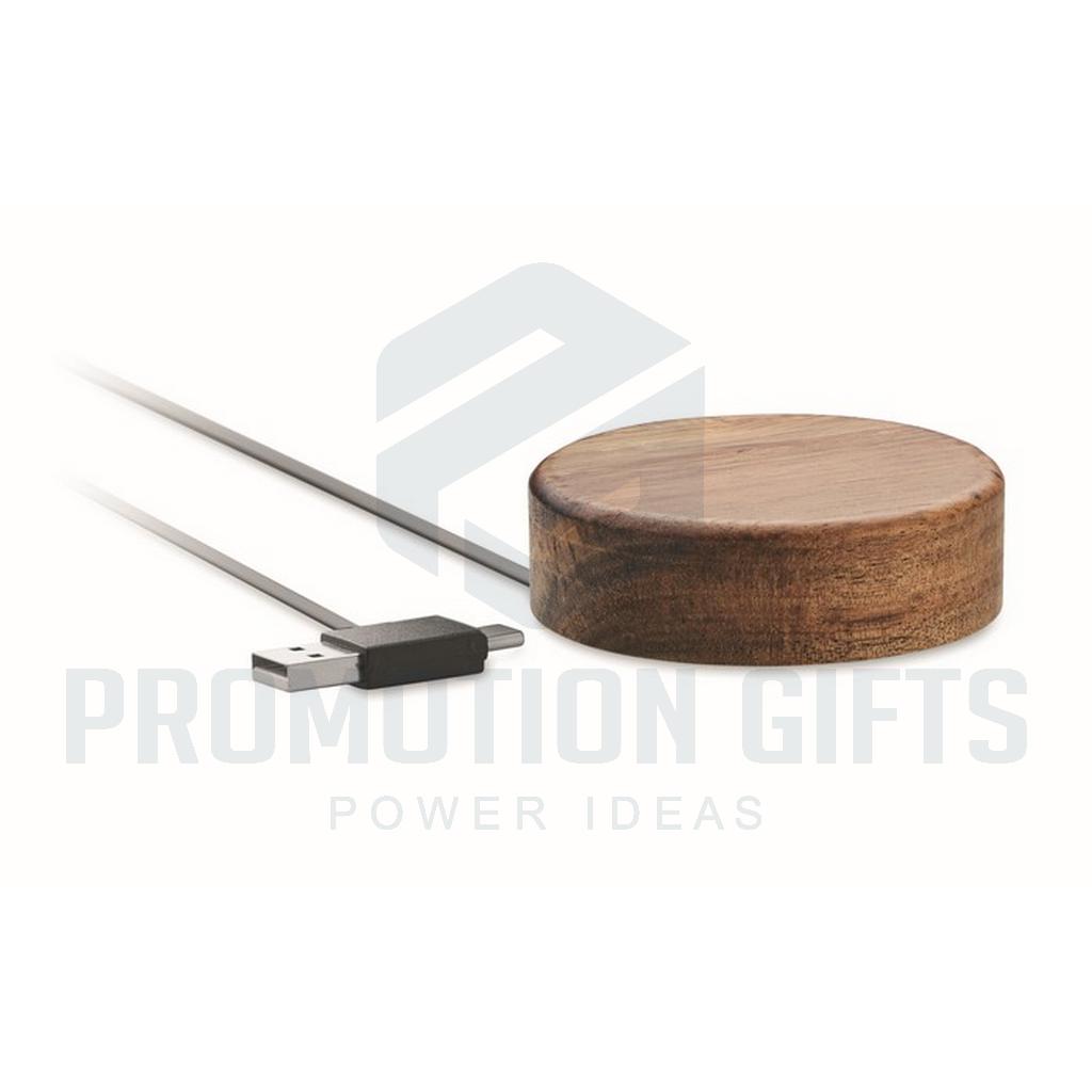 Διαφημιστικοί Φορτιστές Ασύρματοι ACALESS. Ασύρματος φορτιστής από ξύλο ακακίας με αναδιπλούμενο καλώδιο. Συνδέστε τη συσκευή στον υπολογιστή σας, τοποθετήστε το smartphone πάνω του και αφήστε το να φορτίσει. Έξοδος: DC 9V/1,67A (15W). Συμβατό με όλες τις συσκευές με δυνατότητα QI, όπως τα πιο πρόσφατα Android, iPhone® 8, X και νεότερα.
