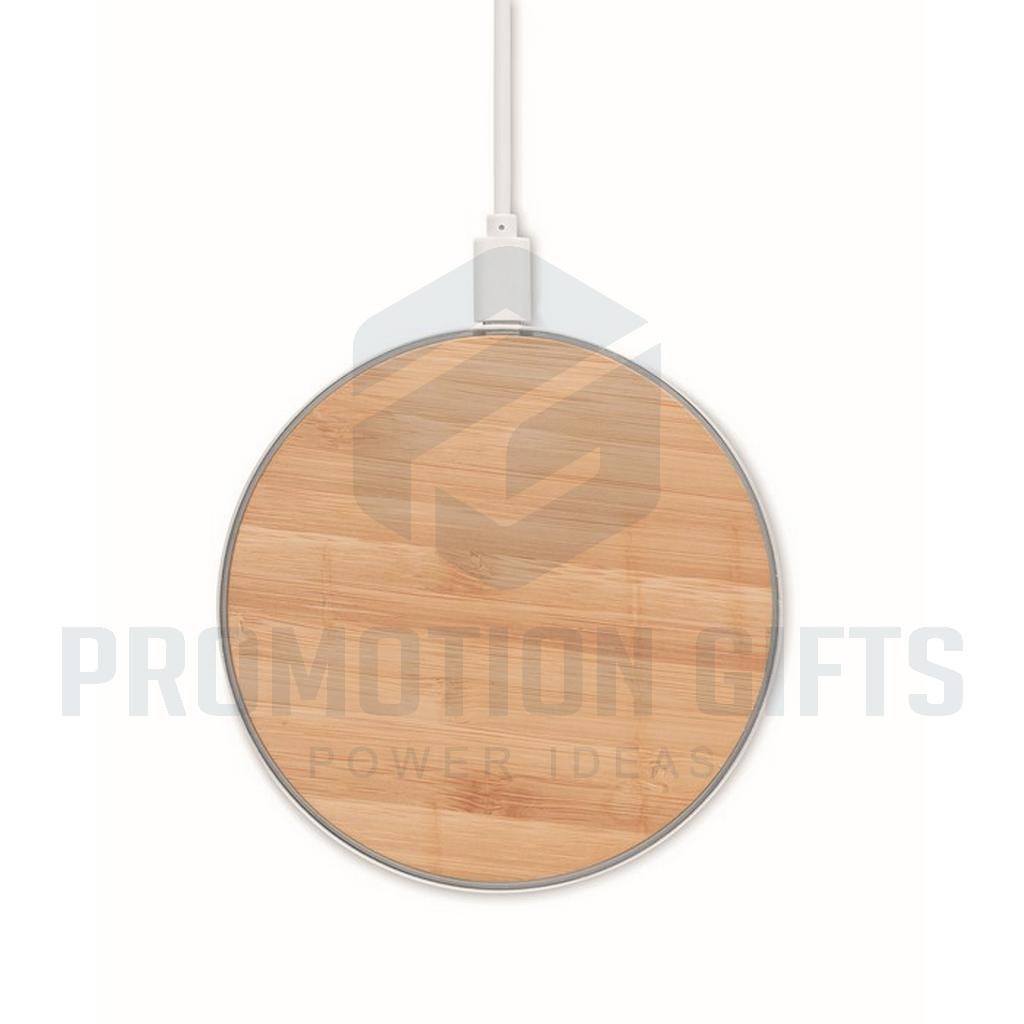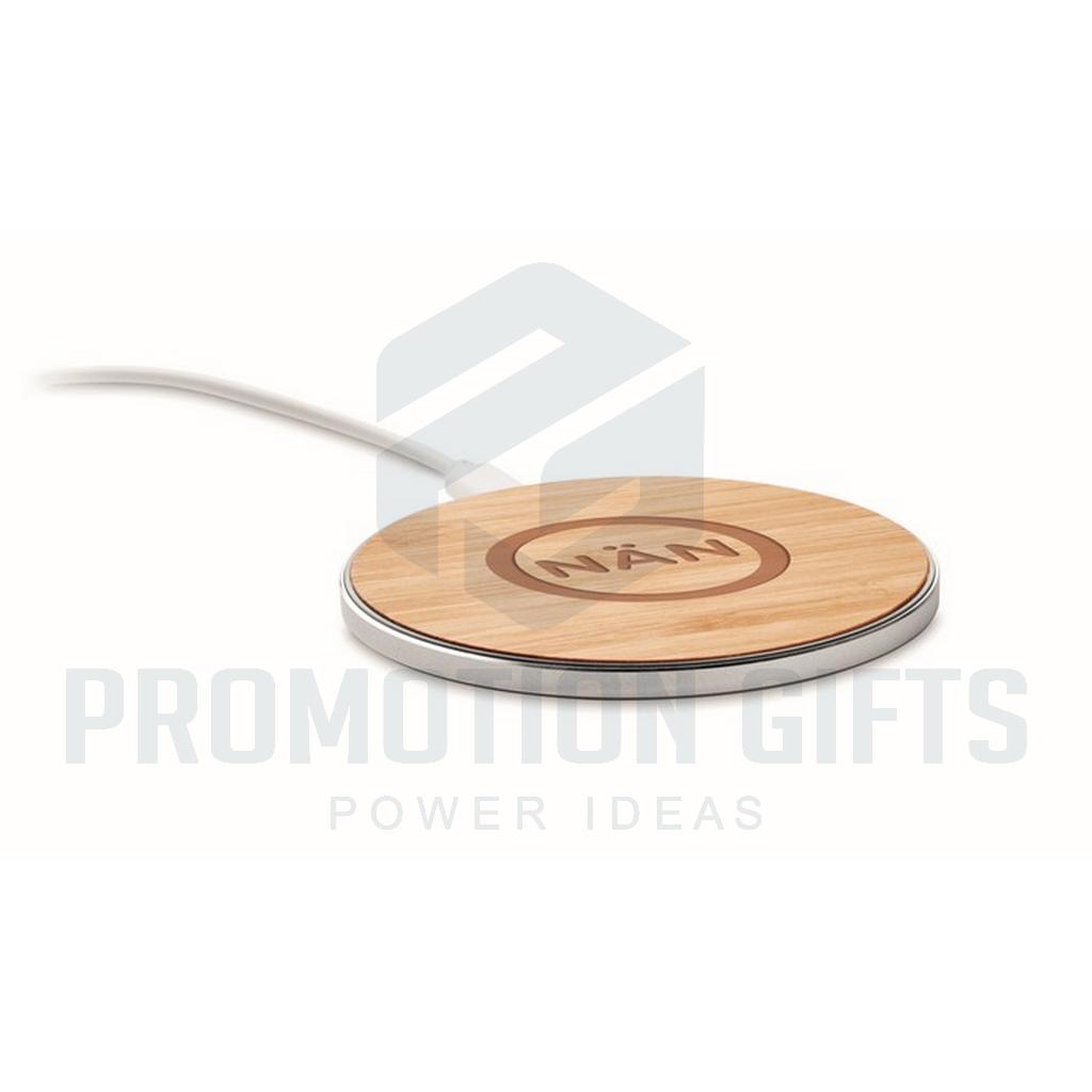 Διαφημιστικοί Φορτιστές Ασύρματοι DESPAD. Ασύρματος ταχυφορτιστής από μπαμπού και αλουμίνιο. Μπλε φως αναμμένο κατά τη φόρτιση. Έξοδος: DC9V/1.1A (10W). Το μπαμπού είναι φυσικό προϊόν, ενδέχεται να υπάρχουν μικρές διακυμάνσεις στο χρώμα και το μέγεθος ανά αντικείμενο, οι οποίες μπορούν να επηρεάσουν το τελικό αποτέλεσμα.