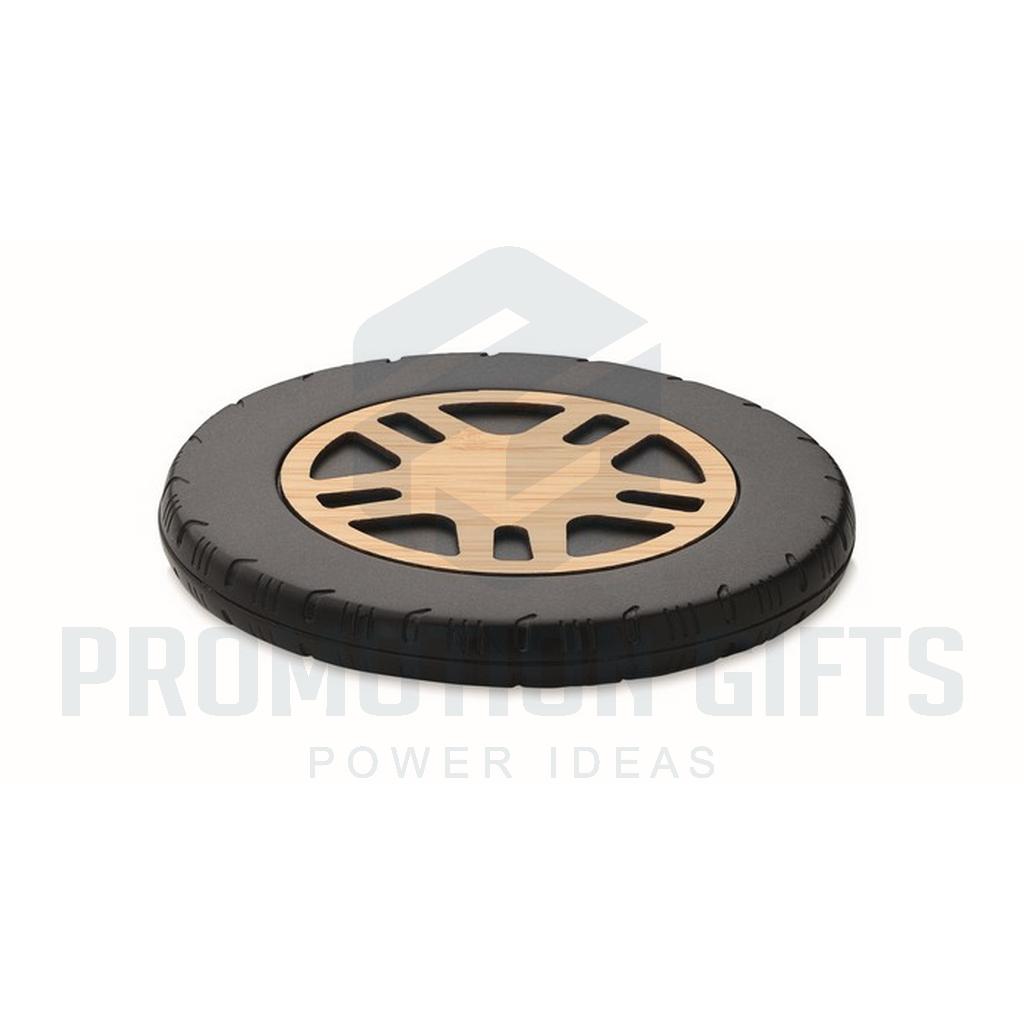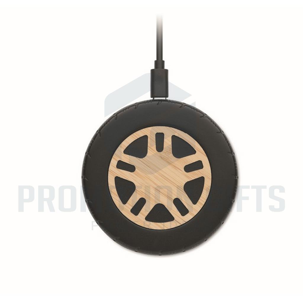 Διαφημιστικοί Φορτιστές Ασύρματοι MATICLESS. Ασύρματος φορτιστής 15W από ανακυκλωμένο ABS και μπαμπού. Σχέδιο ελαστικό αυτοκινήτου. Συνδέστε τη συσκευή στον υπολογιστή σας, τοποθετήστε το smartphone πάνω του και αφήστε το να φορτίσει. Έξοδος: DC 9V/1.10A (15W) για γρήγορη φόρτιση. Συμβατό με όλες τις συσκευές με δυνατότητα QI, όπως τα πιο πρόσφατα Android, iPhone® 8, X και νεότερα.