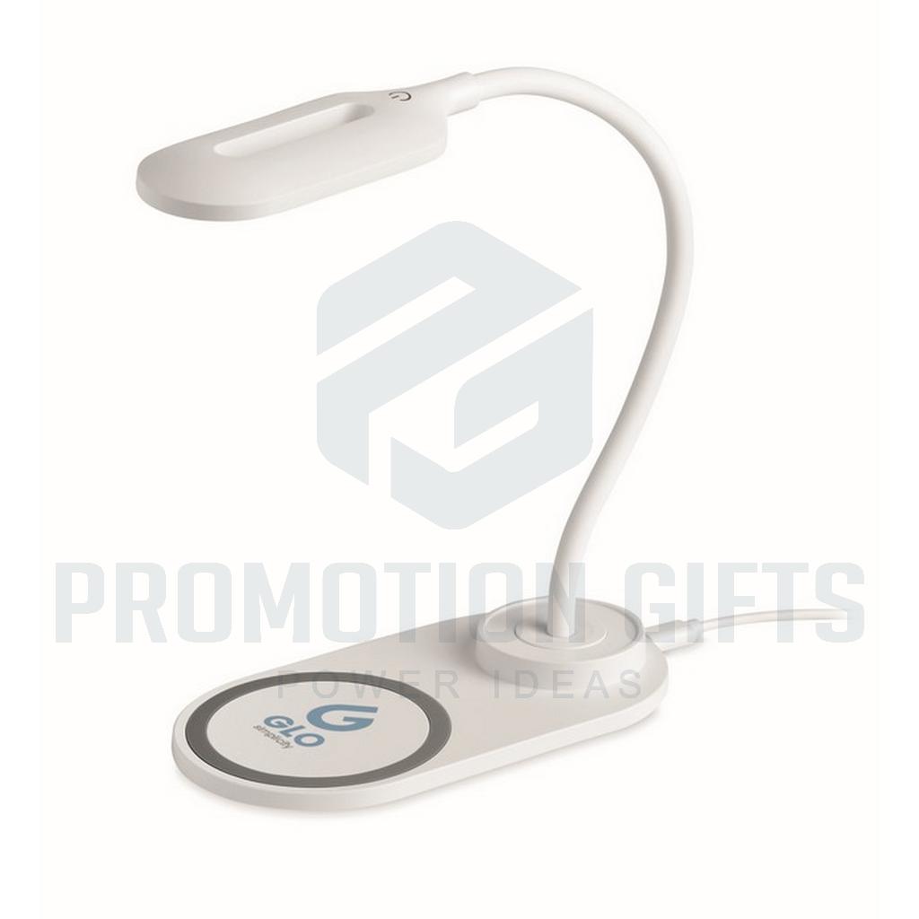Διαφημιστικοί Πολυφορτιστές SATURN. Μοντέρνο φωτιστικό γραφείου από ABS με 10 φώτα LED και ασύρματο φορτιστή 10W. Τα κουμπιά αφής για την ενεργοποίηση του φωτισμού είναι ενσωματωμένα μέσα στη βάση, ώστε να μπορούν να λειτουργούν όπως μια οθόνη αφής. Τοποθετήστε την κινητή σας συσκευή στη βάση για να φορτίσετε την μπαταρία. Έξοδος: DC 9V/1.1A (10W) για γρήγορη φόρτιση. Συμβατό με τα πιο πρόσφατα Android, iPhone® 8 και νεότερα.