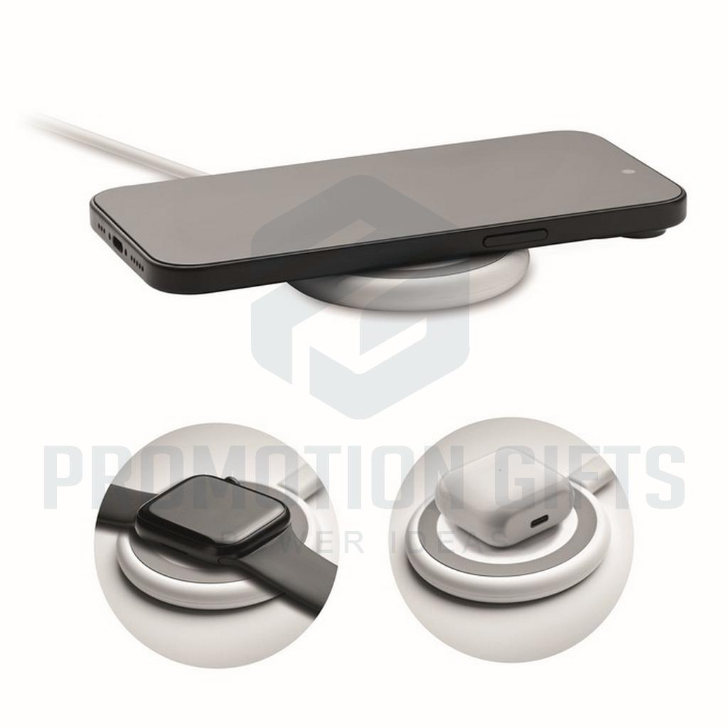 Διαφημιστικοί Πολυφορτιστές WERLIES. Ασύρματος φορτιστής 3 σε 1 15W. Περιλαμβάνει μαγνητικό ασύρματο φορτιστή 15W, φορτιστή smartwatch (μόνο Apple®) και φορτιστή TWS. Μήκος καλωδίου: 1M. Είσοδος: 2 σε 1 Type-C και Type-A.