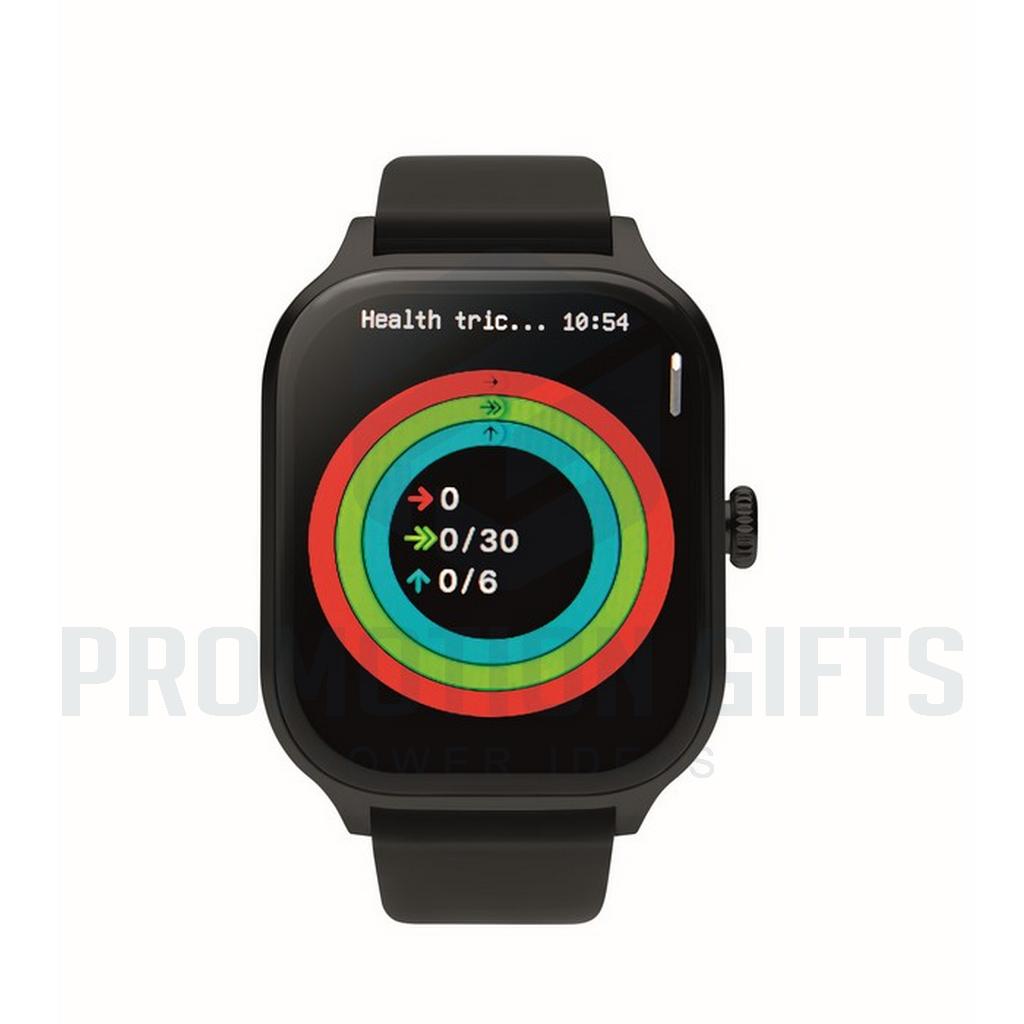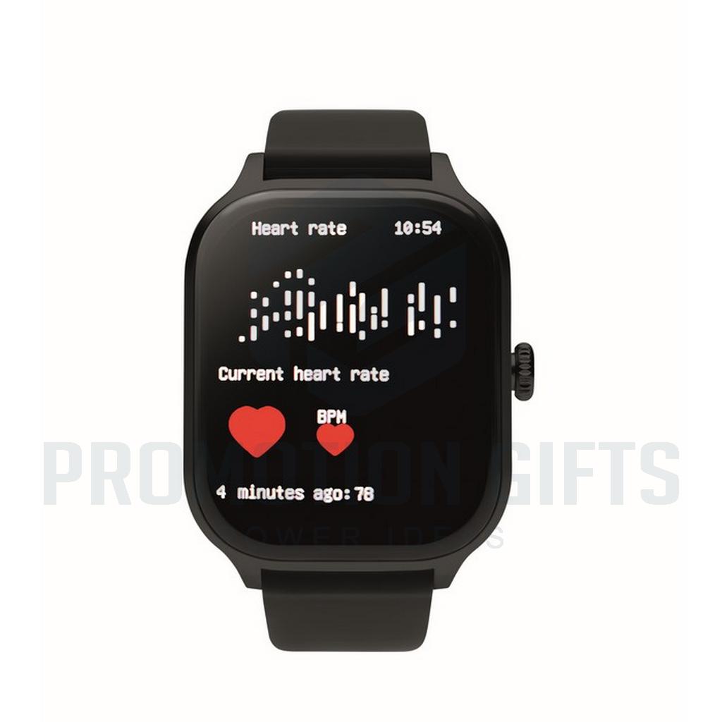 Διαφημιστικά Smartwatches IRTO. Ασύρματο έξυπνο ρολόι υγείας 5.4 από κράμα ψευδαργύρου με λουράκι σιλικόνης. Οθόνη αφής LCD 2,01 ιντσών. Επαναφορτιζόμενη μπαταρία Li-Pol 180 mAh. Απαιτείται δωρεάν εφαρμογή (το HryFine είναι διαθέσιμο σε iOS και Android)