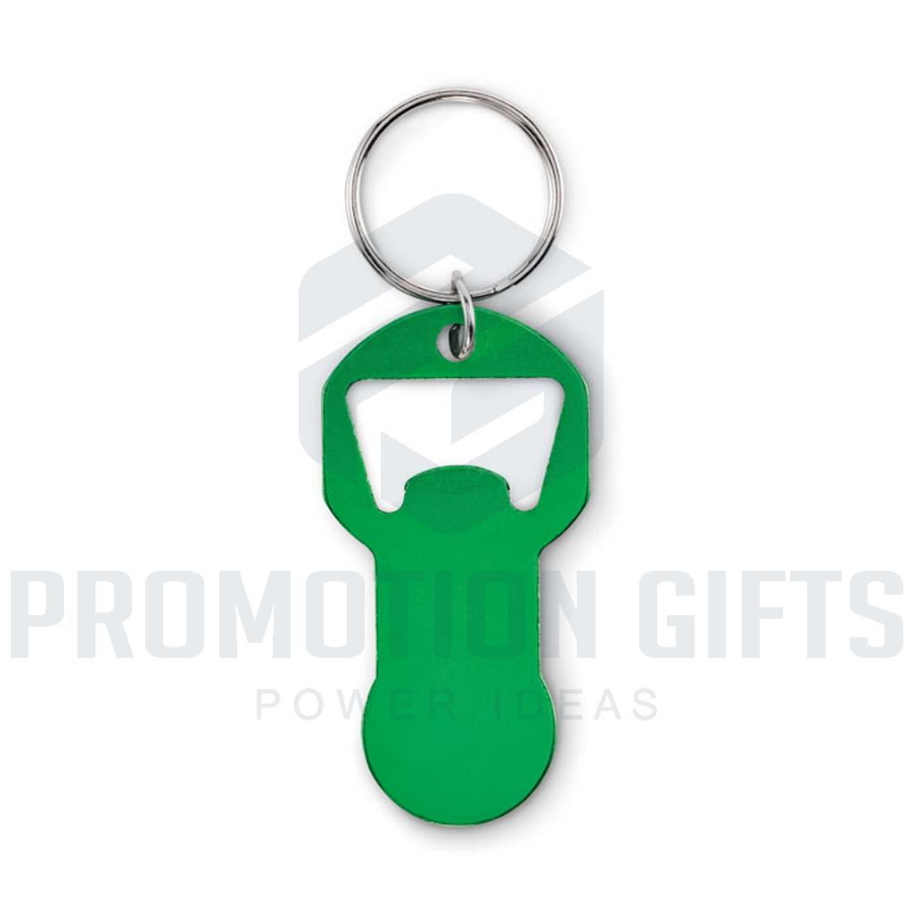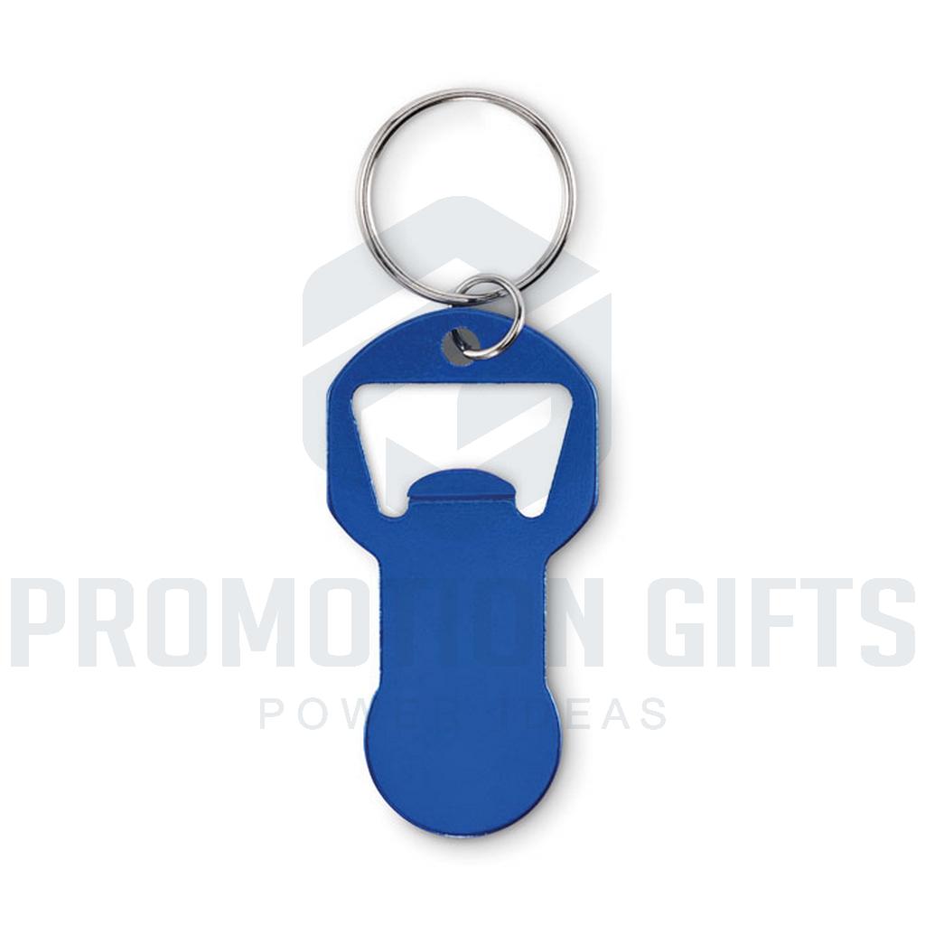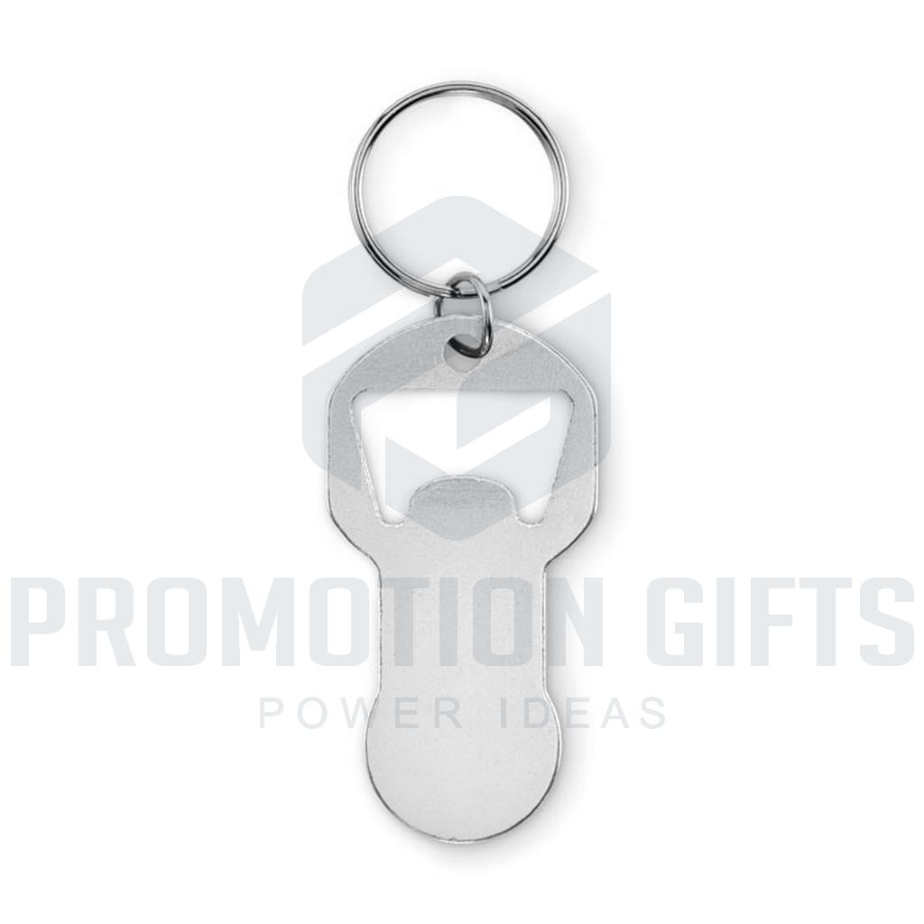 Διαφημιστικά Μπρελόκ με Ανοιχτήρι CLAVE. Μπρελόκ με μάρκες για ανοιχτήρι μπουκαλιών από ανακυκλωμένο αλουμίνιο με σιδερένιο δακτύλιο.