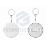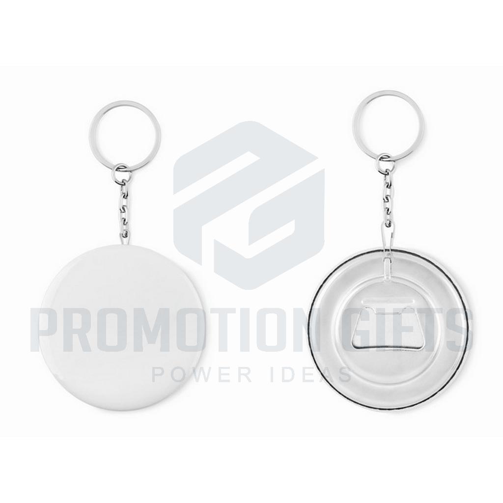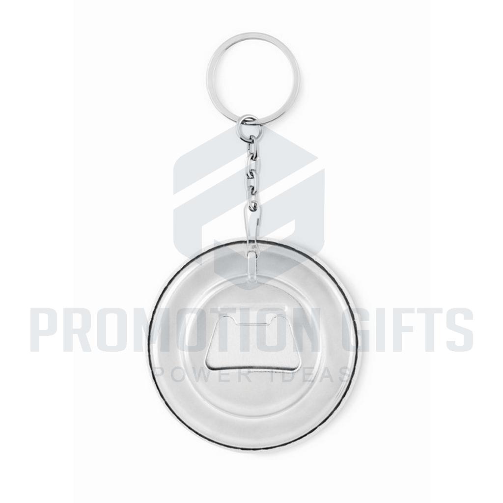 Διαφημιστικά Μπρελόκ με Ανοιχτήρι PIN FLASK. Μπρελόκ με κονκάρδα και ανοιχτήρι μπουκαλιών με ένθετο χαρτί. Ø5,8 CM. Ελάχιστη ποσότητα παραγγελίας 25 τεμάχια. Για παραγγελίες χωρίς εκτύπωση, το προϊόν παραδίδεται αποσυναρμολογημένο.