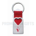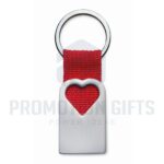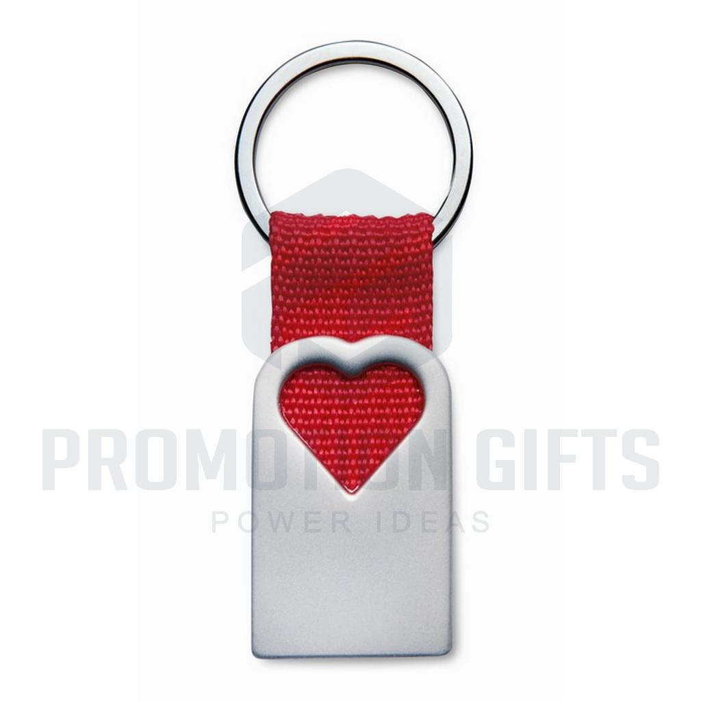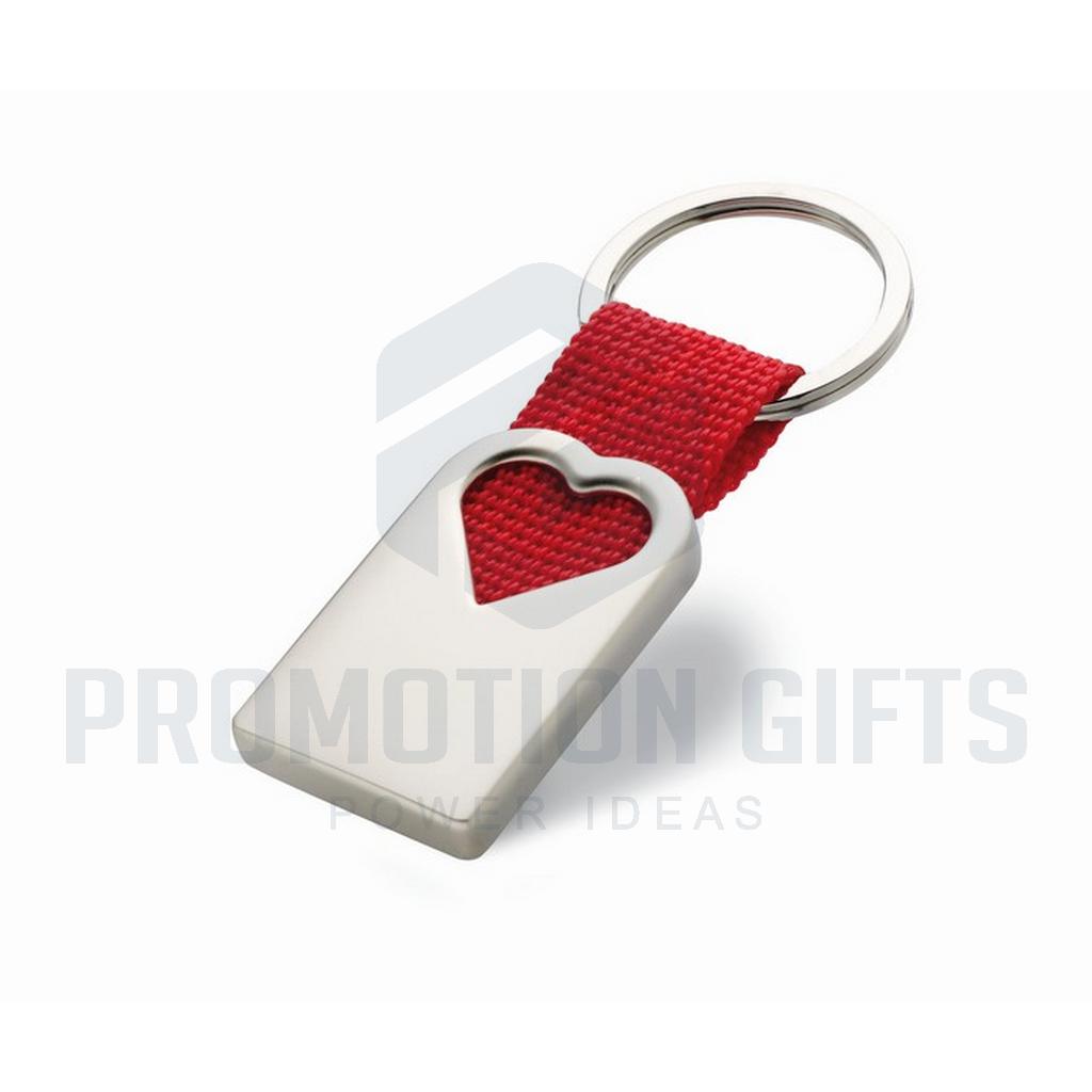 Διαφημιστικά Μπρελόκ Υφασμάτινα-Μεταλλικά BONHEUR. Μεταλλικό μπρελόκ σε ματ φινίρισμα μαργαριταριού με διακόσμηση σε σχήμα καρδιάς και πολυεστερικό ιμάντα που συγκρατεί τον μεταλλικό κρίκο. Ατομικό κουτί δώρου.