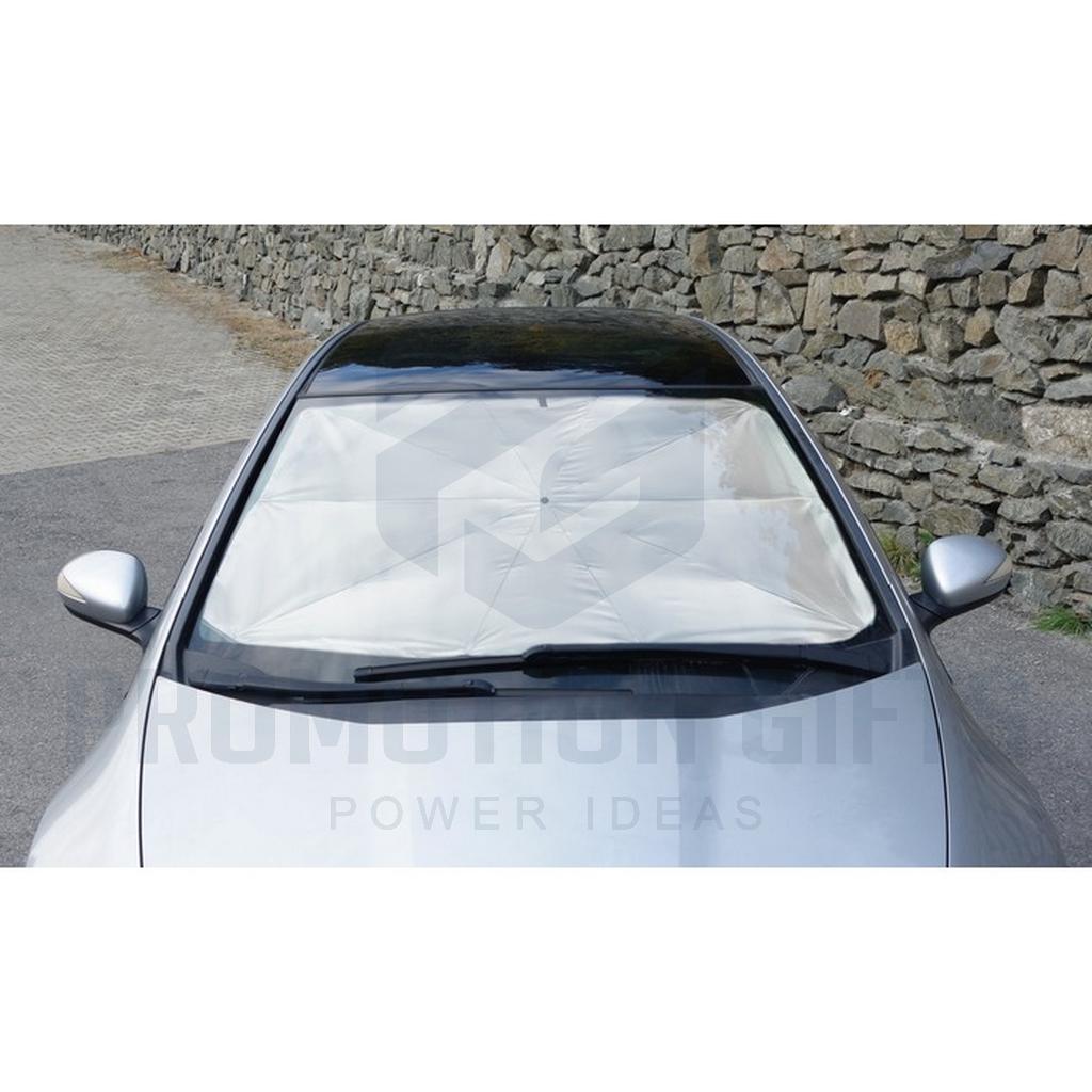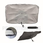 Διαφημιστικές Ηλιοπροστασίες Αυτοκινήτου BAYANG. Ομπρέλα αυτοκινήτου για σκίαστρο παρμπρίζ από ύφασμα pongee 190T με ασημένια επένδυση στη μία πλευρά. Χειροκίνητο άνοιγμα/κλείσιμο.
