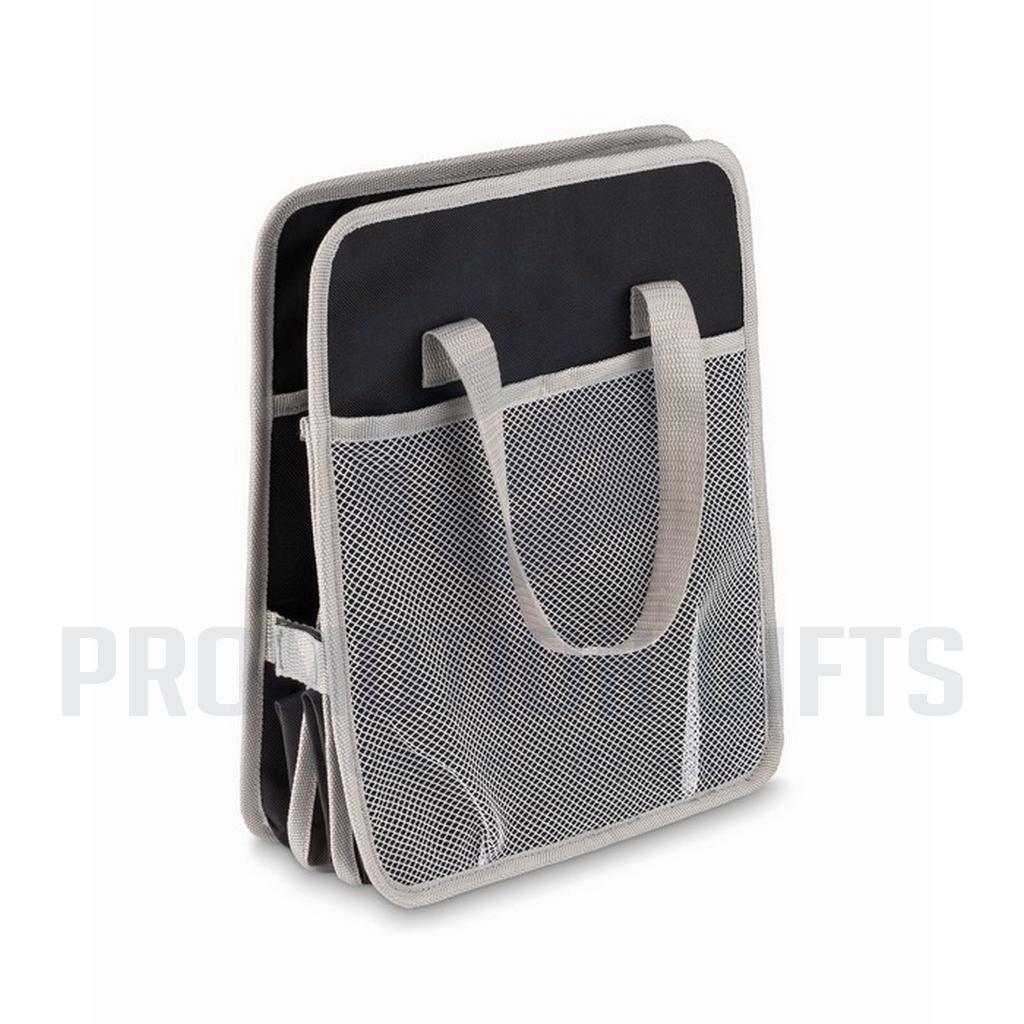 Διαφημιστικός Οργανωτής Αυτοκινήτου Πορτ-Μπαγκάζ ORGANIZER. Πτυσσόμενος οργανωτής αυτοκινήτου από πολυεστέρα 600D με τσέπη από πλέγμα στο πλάι. Όταν δεν χρησιμοποιείται, μπορείτε να τον διπλώσετε για συμπαγή αποθήκευση. Επίσης, αυτό κάνει την οδήγηση ασφαλέστερη, καθώς θα αποτρέψει την πιθανή κύλιση αντικειμένων κάτω από τα πόδια του οδηγού.