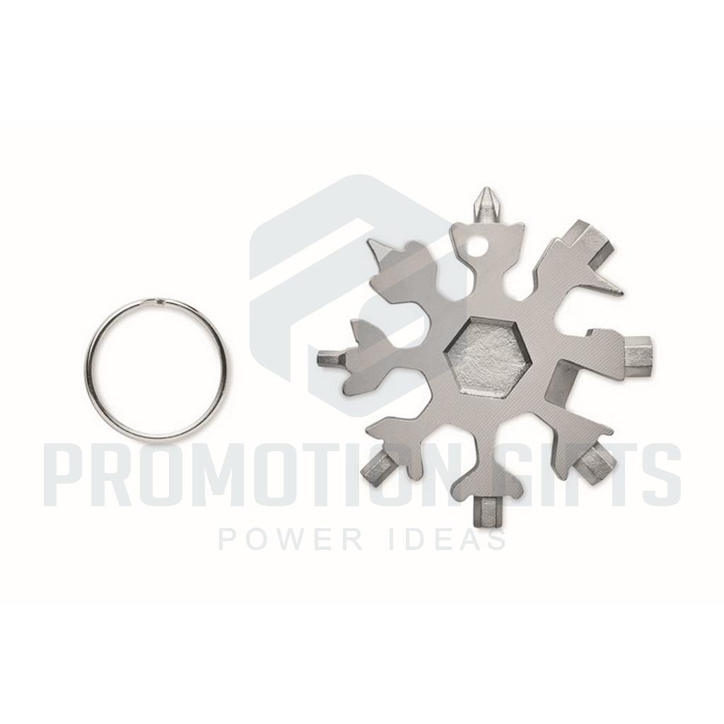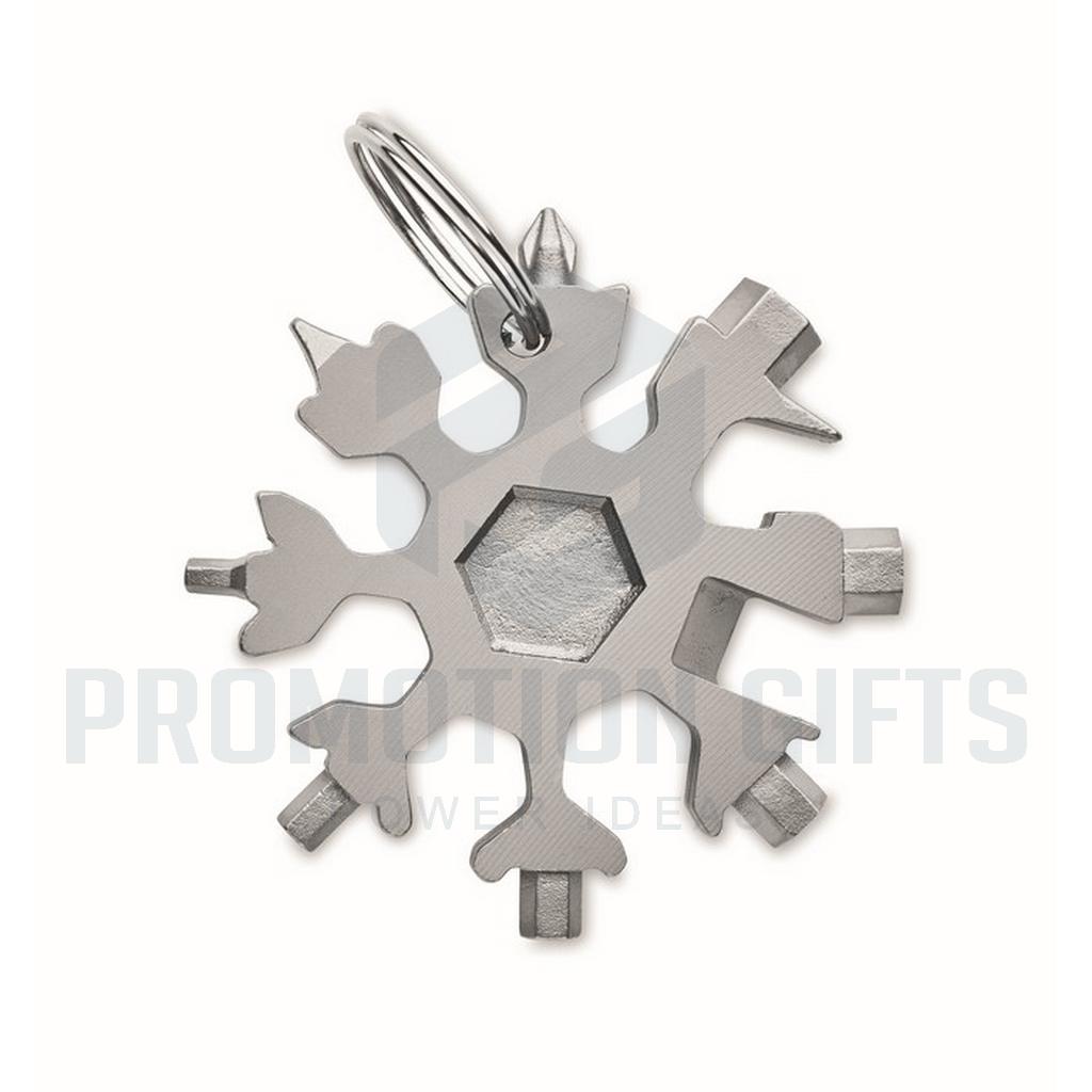 Διαφημιστικά Πολυεργαλεία Τσέπης FLOQUET. Πολυεργαλείο 17 σε 1 από ανοξείδωτο ατσάλι σε σχήμα νιφάδας χιονιού. Περιλαμβάνεται προαιρετικός μεταλλικός δακτύλιος. Αυτό το πολυεργαλείο είναι ιδανικό για εργασίες DIY.