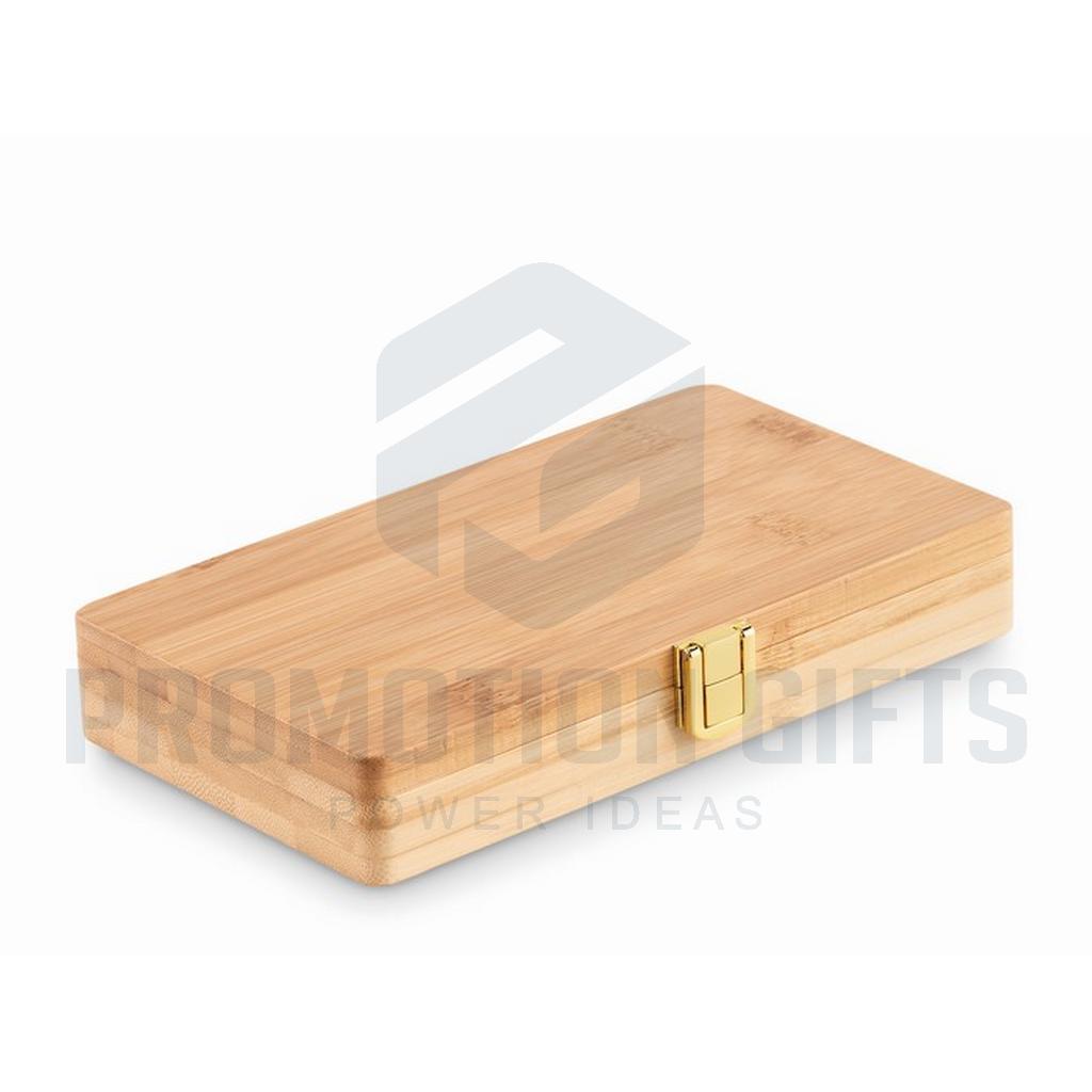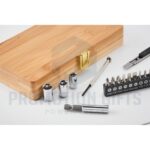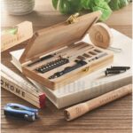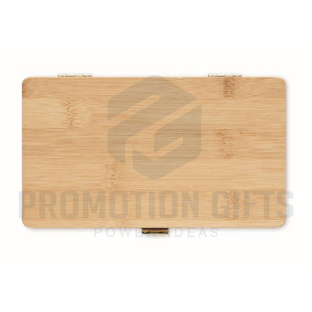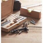 Διαφημιστικά Σετ Εργαλείων GALLAWAY. Πρακτικό σετ εργαλείων 21 τεμαχίων σε μια θήκη από μπαμπού. Περιέχει 3 κατσαβίδια ακριβείας, 10 μύτες, 1 προσαρμογέα, 4 καρυδάκια, 1 κοπίδι, 1 λαβή και 1 σύνδεσμο. Το μπαμπού είναι ένα φυσικό προϊόν, ενδέχεται να υπάρχουν μικρές αποκλίσεις στο χρώμα και το μέγεθος ανά τεμάχιο, οι οποίες μπορούν να επηρεάσουν το τελικό αποτέλεσμα. Πιστοποιημένο από FSC® | FSC 100%, N5.7, FSC-C213206