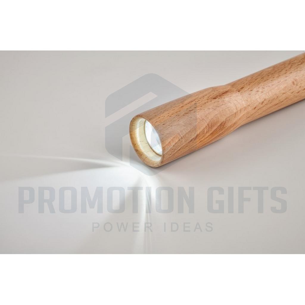 Διαφημιστικοί Φακοί Μπαταρίας TELES. Φακός από ξύλο οξιάς με φως COB 5W. Απαιτούνται 3 μπαταρίες AAA οι οποίες δεν περιλαμβάνονται.