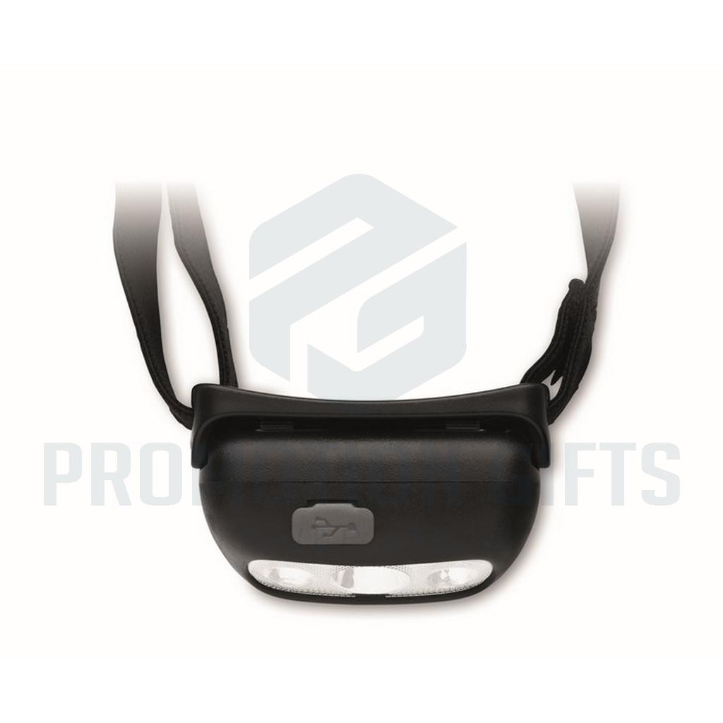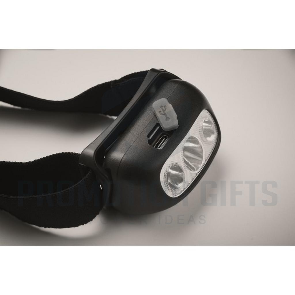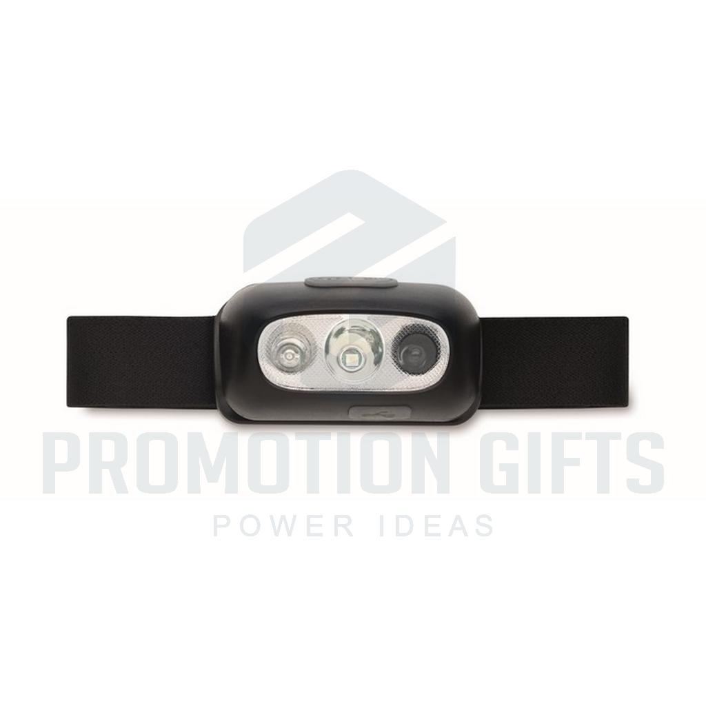 Διαφημιστικοί Φακοί Κεφαλής ELYDEE. Επαναφορτιζόμενος και ρυθμιζόμενος φακός κεφαλής με 1 φως LED (50 lumen) και 3 λειτουργίες ( φλας ). Περιλαμβάνει μπαταρία 400 mAh και καλώδιο φόρτισης.