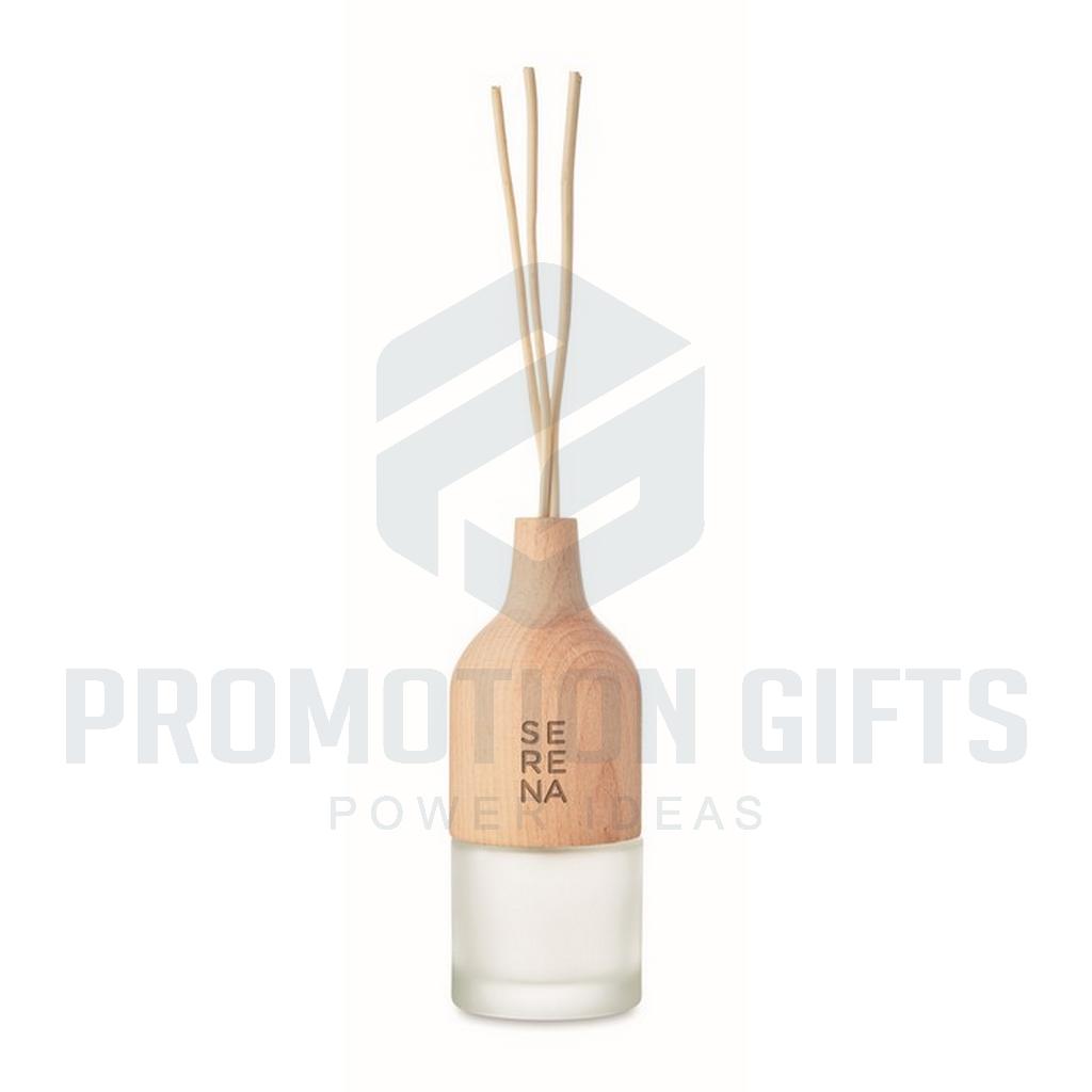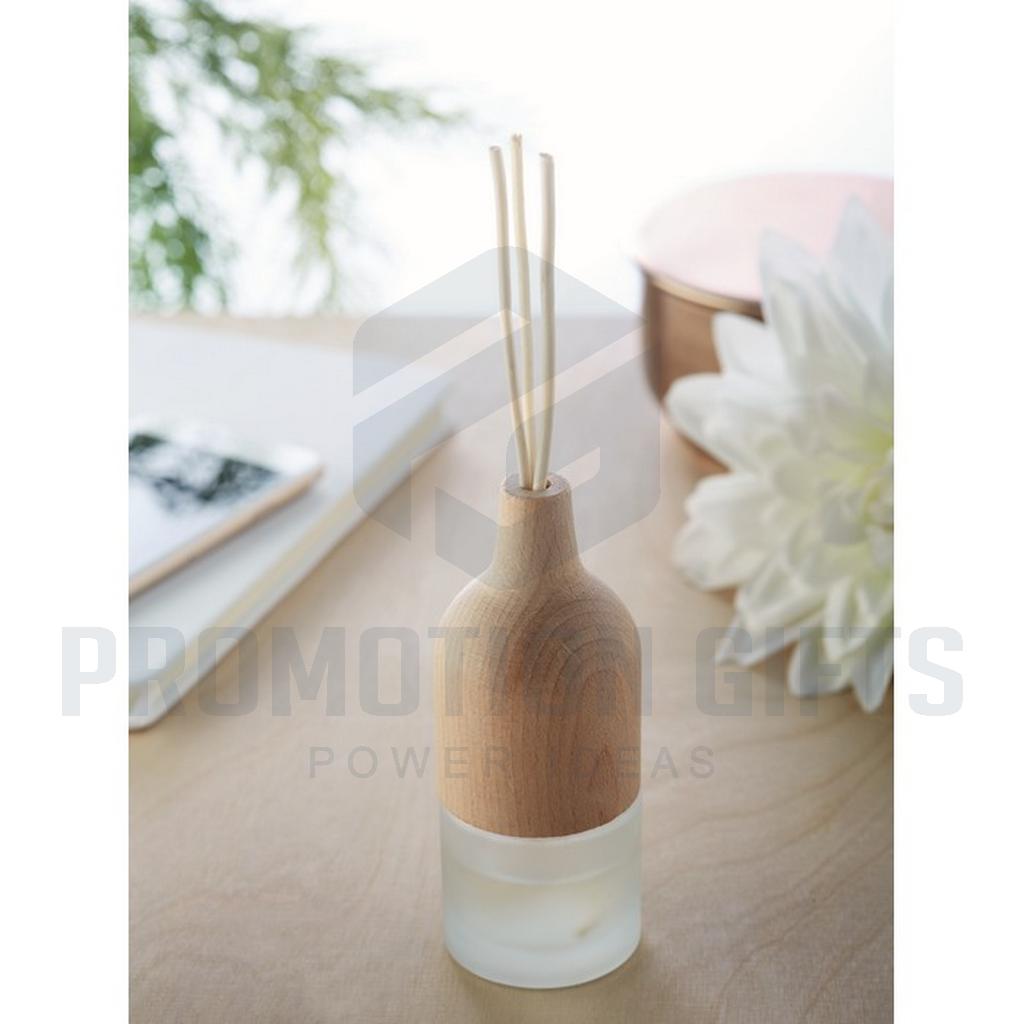 Διαφημιστικά Αρωματικά Sticks AROMA. Αρωματικά χώρου σε stick 3 τεμαχίων. Έρχεται σε φιάλη από γυαλί και ξύλο οξιάς με άρωμα Κρίνου. Χωρητικότητα 30 ml. Καθώς το ξύλο είναι φυσικό υλικό, το χρώμα ανά τεμάχιο μπορεί να διαφέρει. Το πάνω ξύλινο μέρος απορροφά/αφομοιώνει το λάδι, γεγονός που βοηθά στην εξάπλωση του αρώματος.