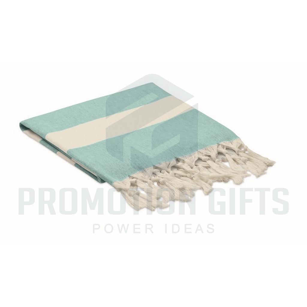 Διαφημιστικές Πετσέτες Χαμάμ ή Θαλάσσης AGOURA. Πετσέτες χαμάμ ή πετσέτες θαλάσσης από ανακυκλωμένα υφάσματα 140 gr/m². Πάρτε αυτή την πετσέτα μαζί σας στην παραλία, στο χαμάμ, στην πισίνα ή σε πικνίκ τις ζεστές καλοκαιρινές μέρες και χαλαρώστε.