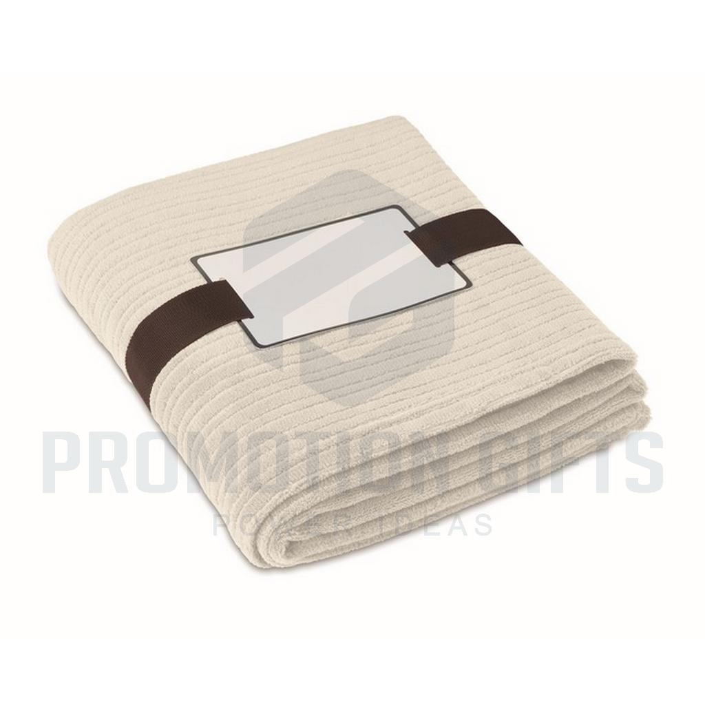 Διαφημιστικές Κουβέρτες CAP CODE. Μαλακή κουβέρτα από fleece 240 gr/m² τυλιγμένη σε κορδέλα και εκτυπώσιμο χαρτόνι.