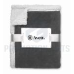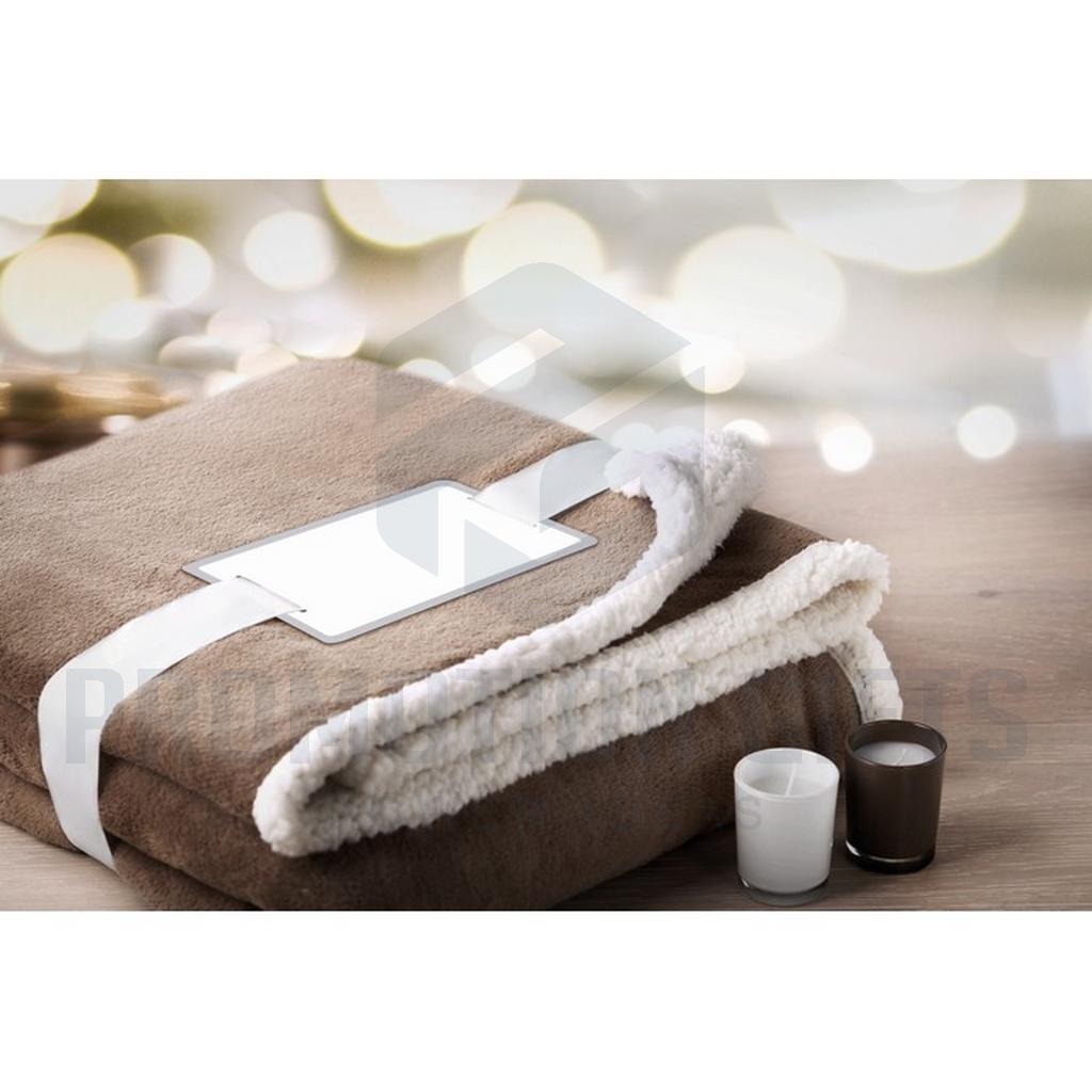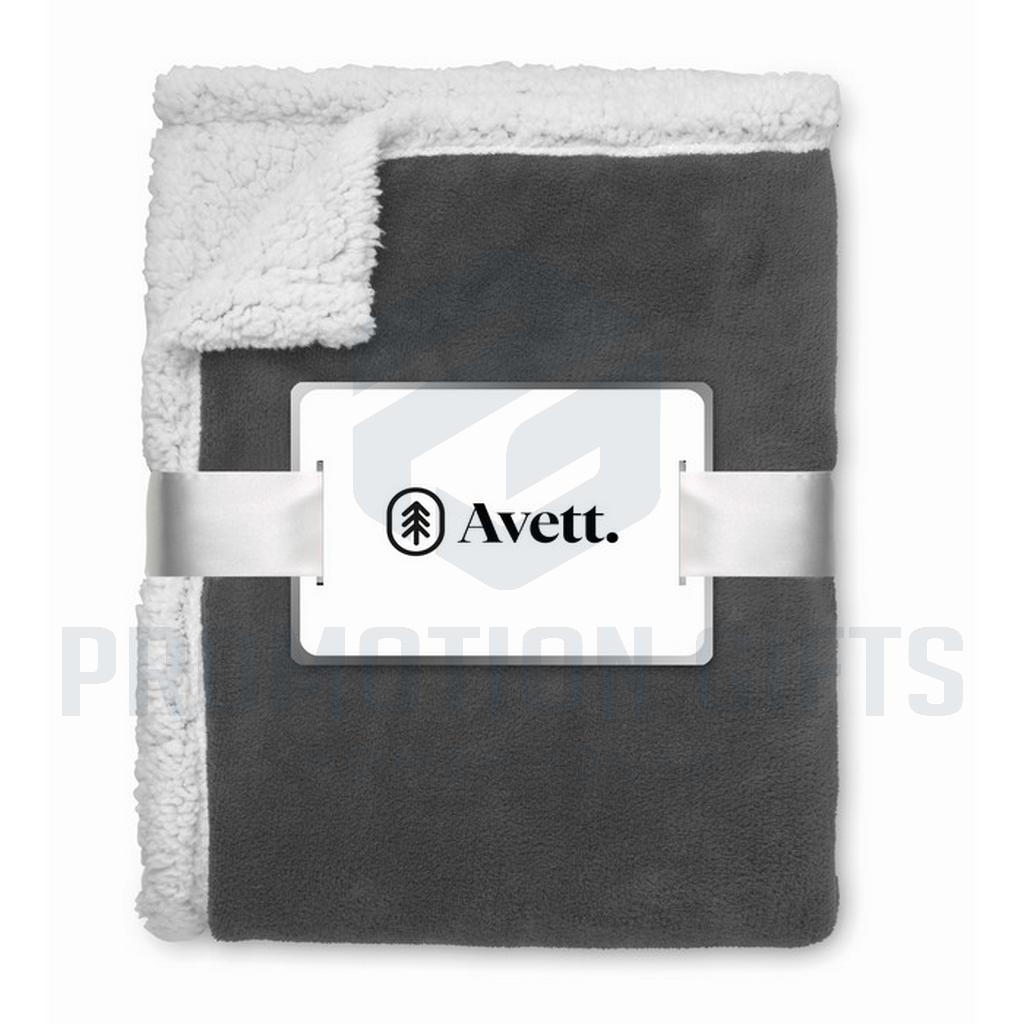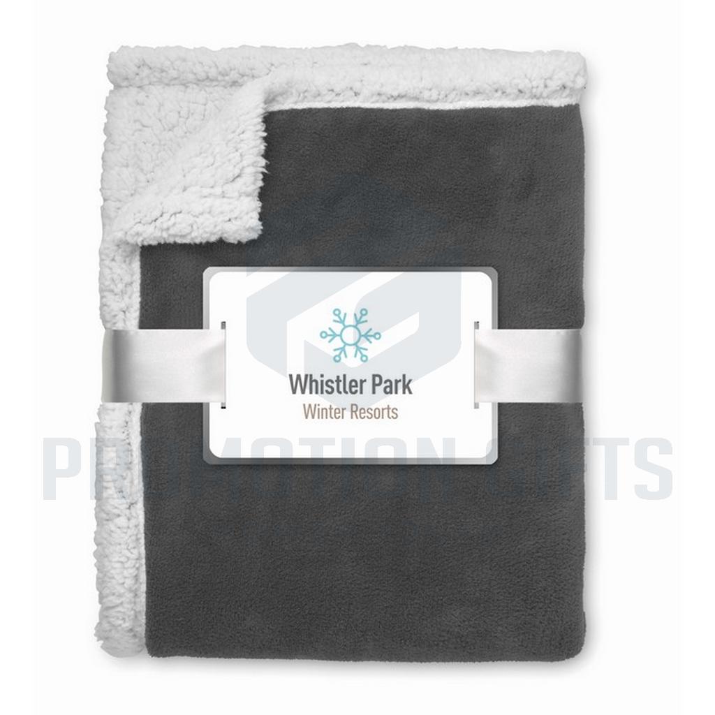 Διαφημιστικές Κουβέρτες ZERMATT. Κουβέρτα από coral fleece 200 gr/m² με αναστρέψιμη επένδυση από πολυεστέρα sherpa 220 gr/m². Τυλιγμένη με κορδέλα και εκτυπώσιμο χαρτόνι.