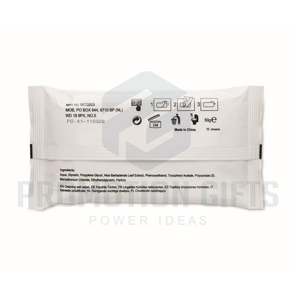 Διαφημιστικά Υγρομάντηλα DELLEA. Υγρομάντηλα καθαρισμού σε συσκευασία 10 τεμαχίων. Μέγεθος ανοιχτών μαντηλιών: 15x20cm. Αυτό το προϊόν ταξινομείται ως καλλυντικό είδος.