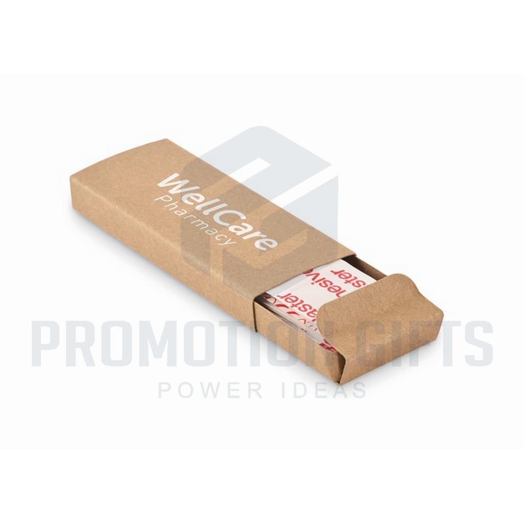 Διαφημιστικά Επιθέματα Τραυμάτων OUCH. Αυτοκόλλητα επιθέματα 15 τεμαχίων σε κουτί από ανακυκλωμένο χαρτί. Δεν διατίθενται προς πώληση στην Ελβετία.