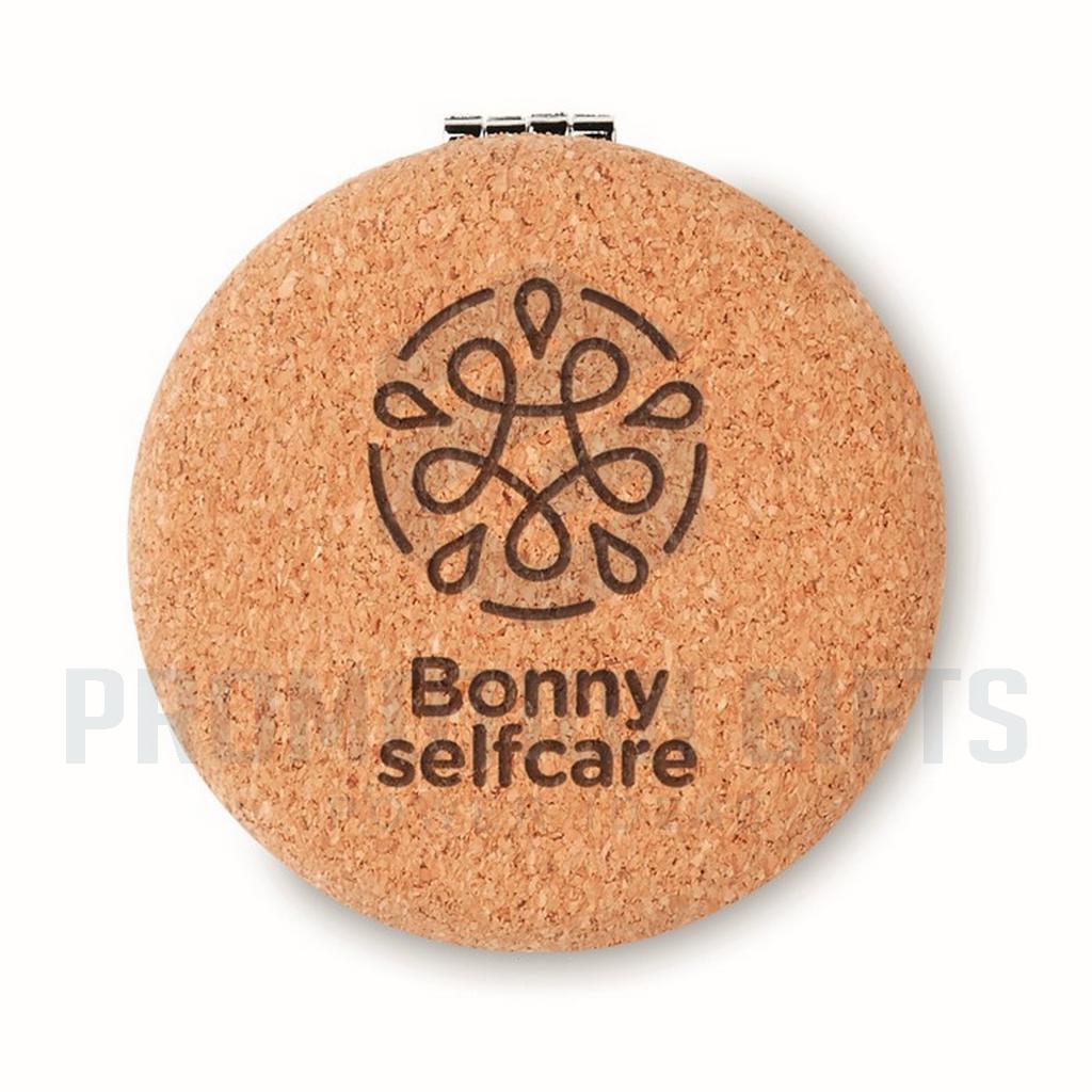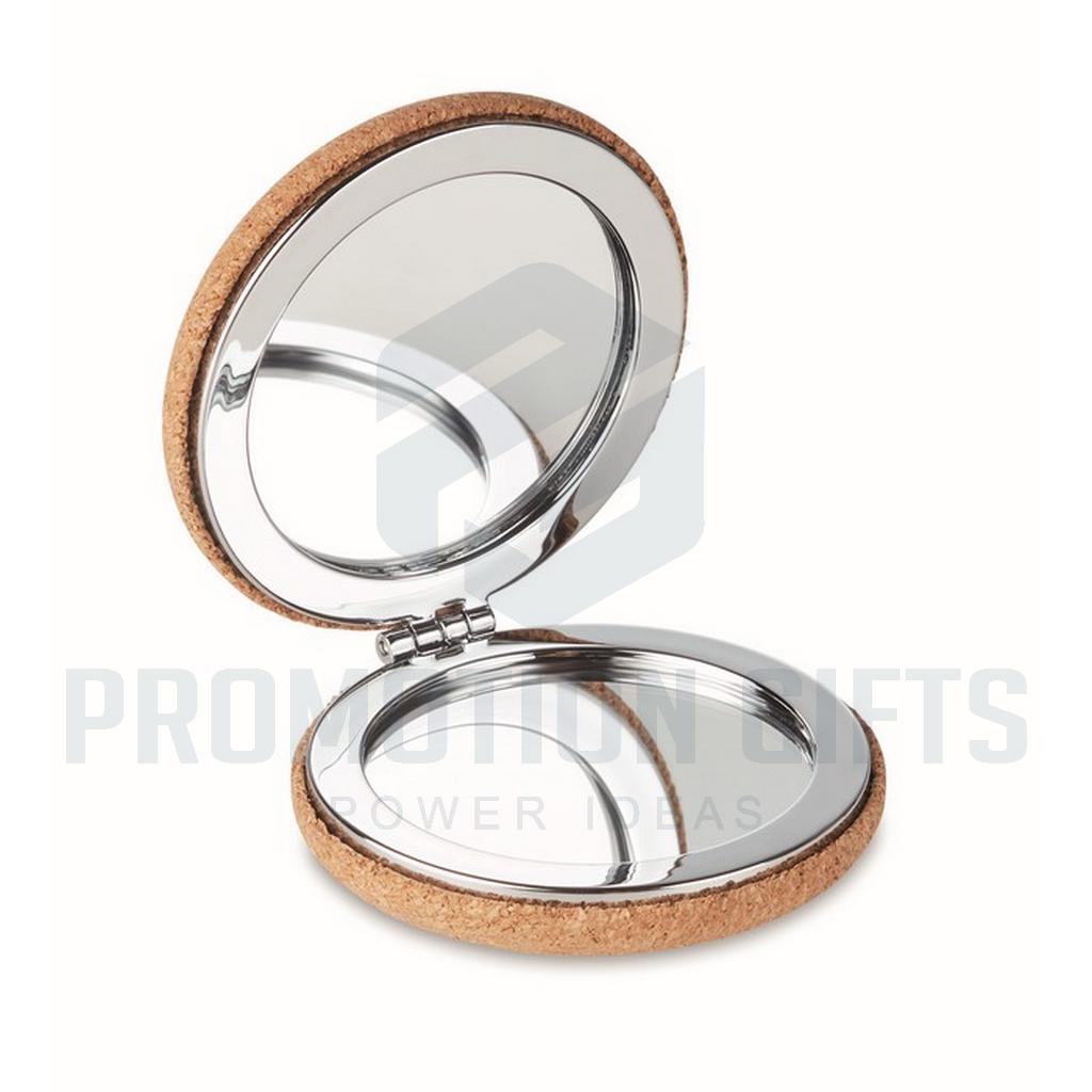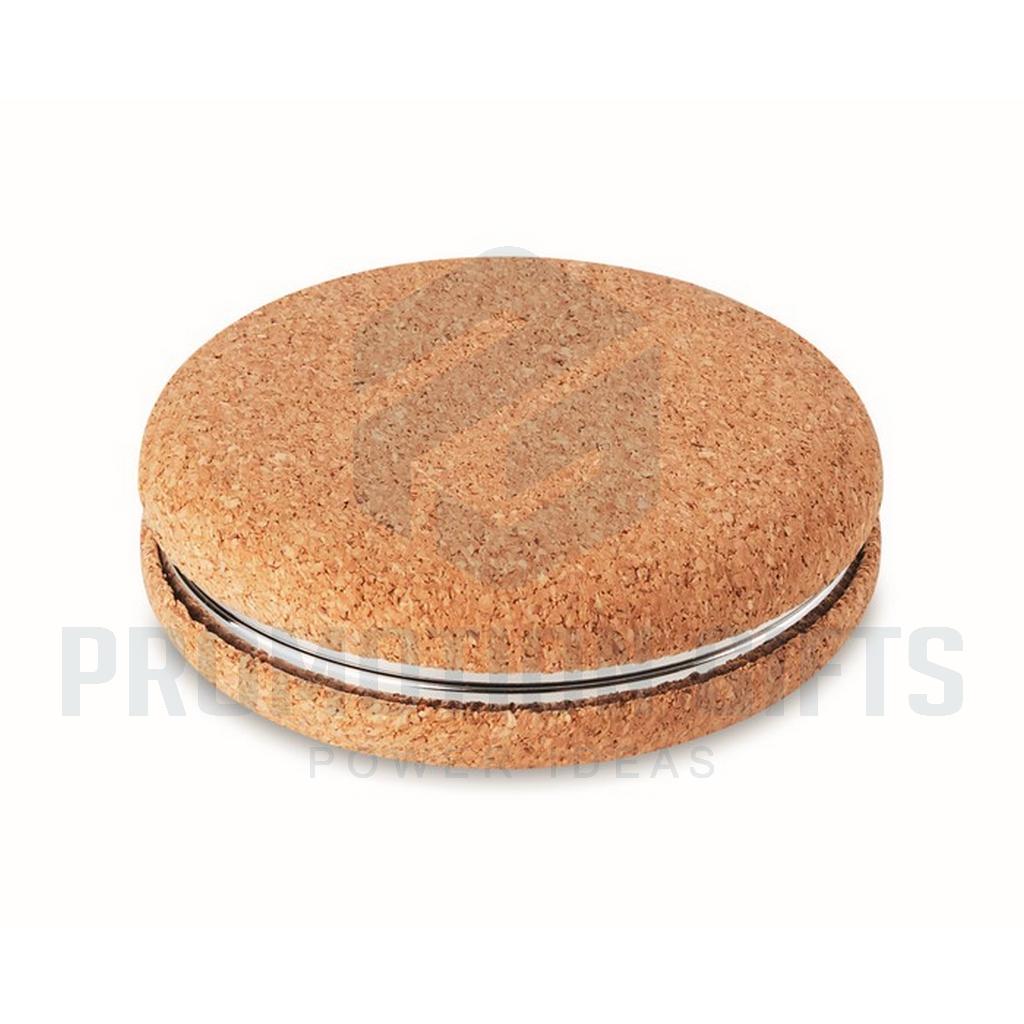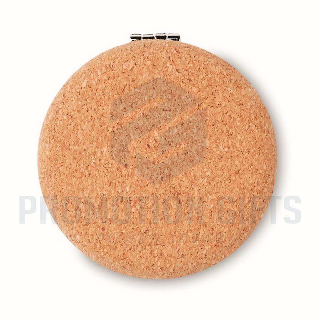 Διαφημιστικά Καθρεφτάκια GUAPA CORK. Στρογγυλός συμπαγής καθρέφτης διπλής όψης με κάλυμμα από φελλό. Ο φελλός είναι ένα φυσικό υλικό. Λόγω της δομικής του φύσης και της πορώδους επιφάνειας του, το τελικό αποτέλεσμα εκτύπωσης ανά αντικείμενο ενδέχεται να έχει αποκλίσεις ως προς το τελικό αποτέλεσμα.