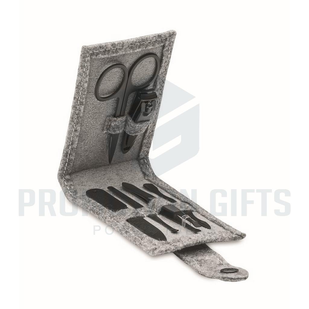 Διαφημιστικά Σετ Μανικιούρ NAILKIT FELT. Σετ μανικιούρ 6 τεμαχίων από ανοξείδωτο ατσάλι σε ορθογώνια θήκη από τσόχα RPET.